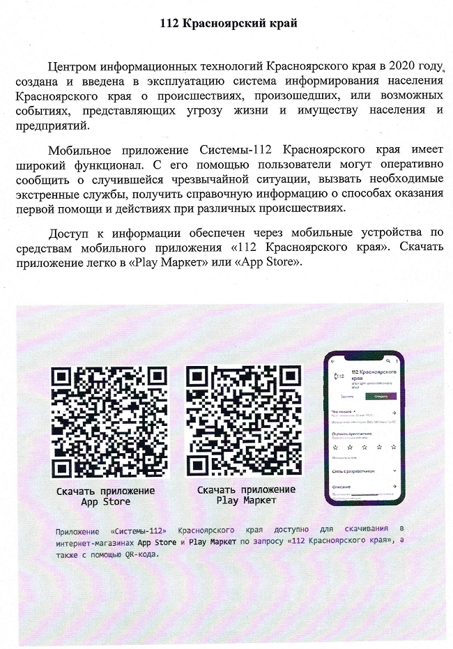 Доступ к информации обеспечен через мобильные устройства посредством мобильного приложения «112 Красноярского края». Скачать приложение легко в «Play Maркет» или «Арр Store».